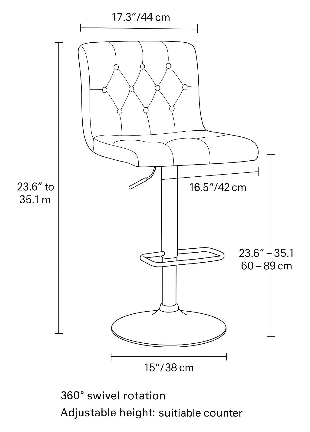● Versatile height adjustment for both counter-height (≈ 24") and bar-height (≈ 30") use