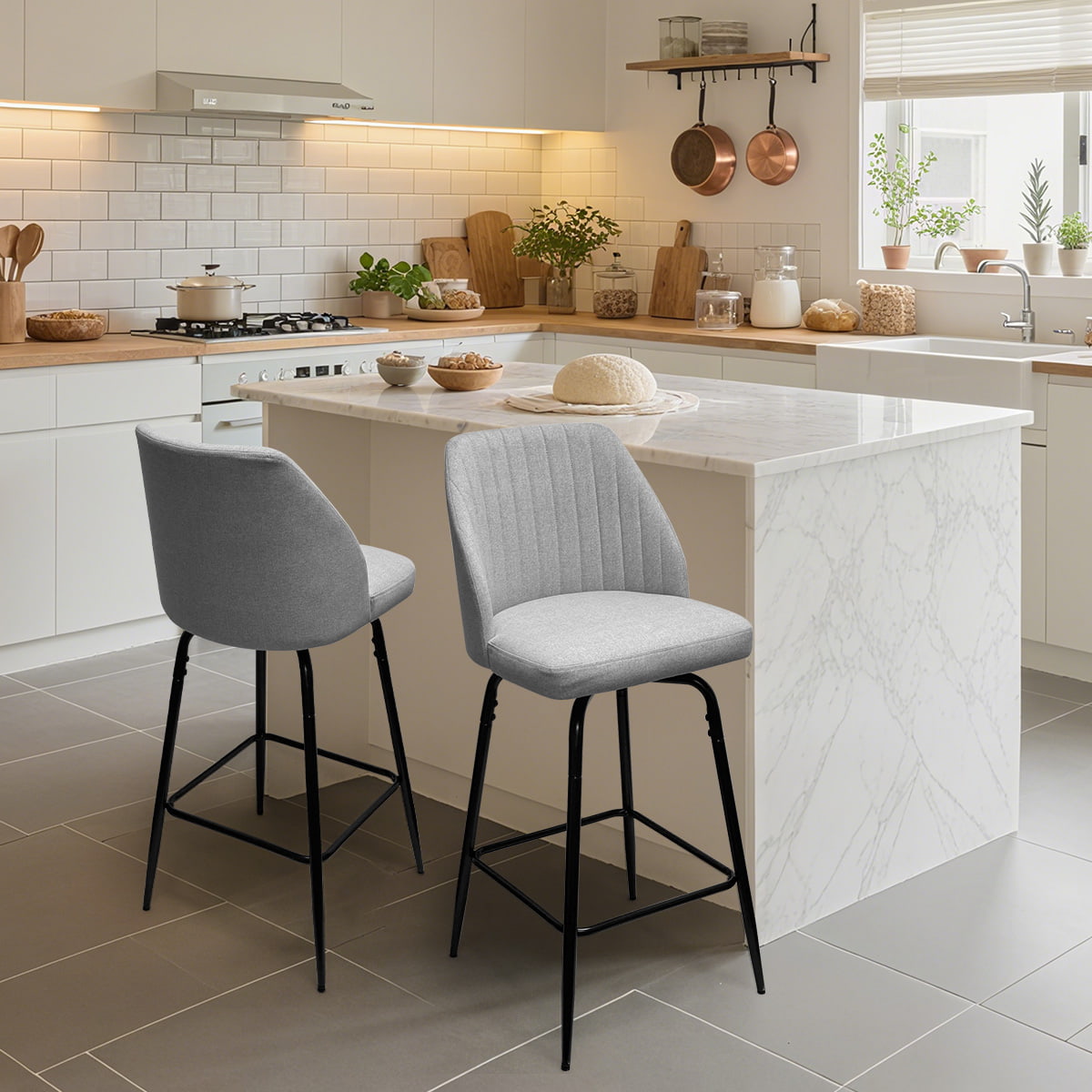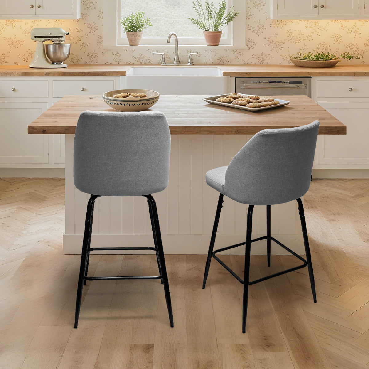 Modern Grey Upholstered Counter Height Bar Stool with Metal Frame – Comfortable Padded Seat & Backrest