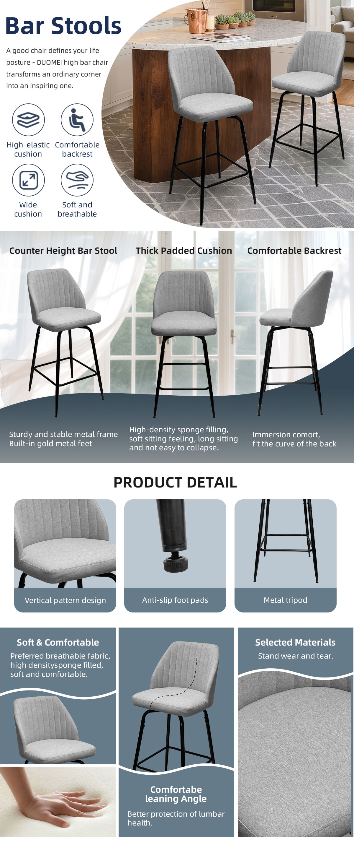 READ MOREUpgrade your dining or bar area with this modern grey upholstered counter height stool, designed for both style and comfort. The 18.5-inch wide seat and high-density sponge cushion provide superior support for long sitting, while the ergonomic backrest ensures proper posture and lumbar comfort. Upholstered in soft, breathable fabric, this stool is both stylish and easy to maintain.