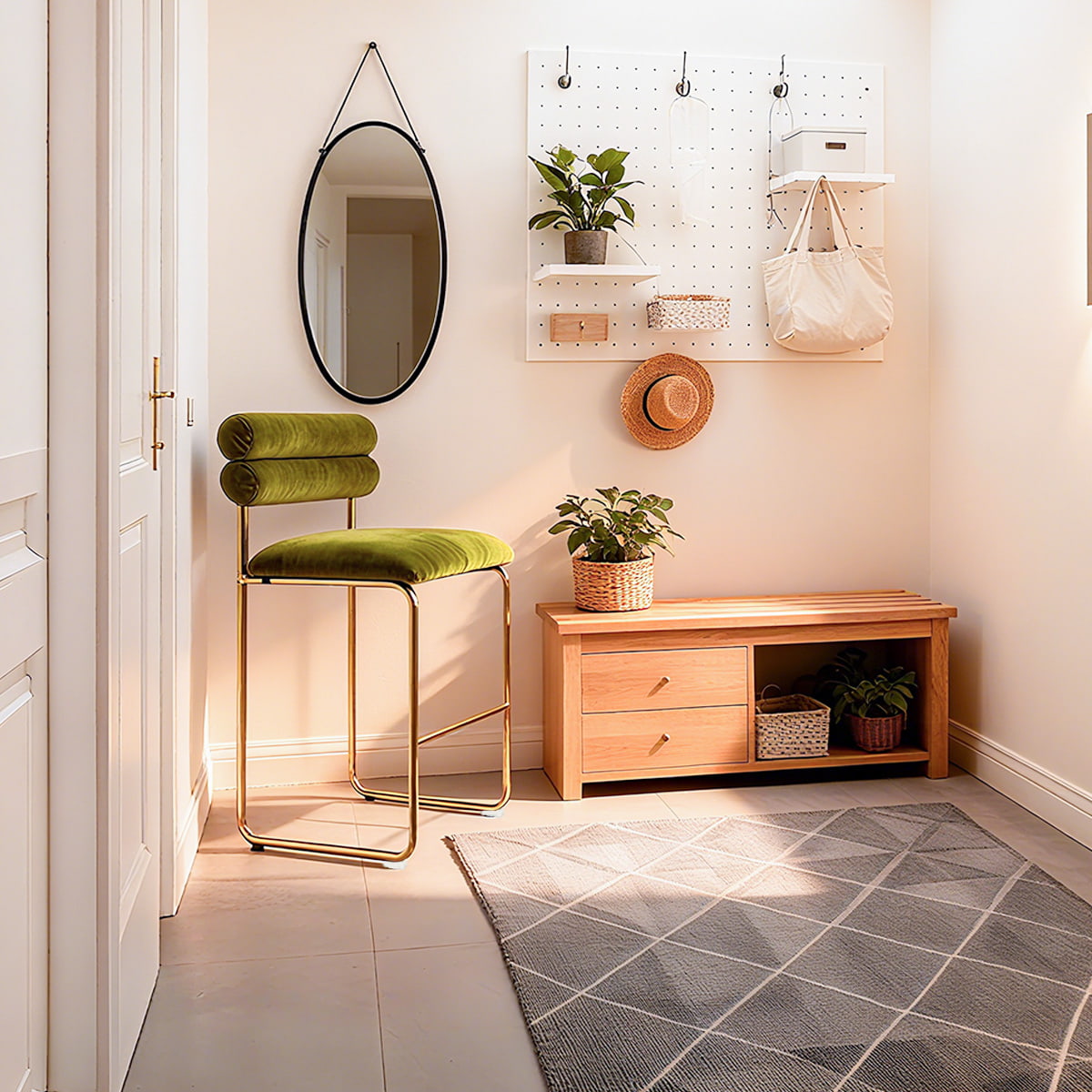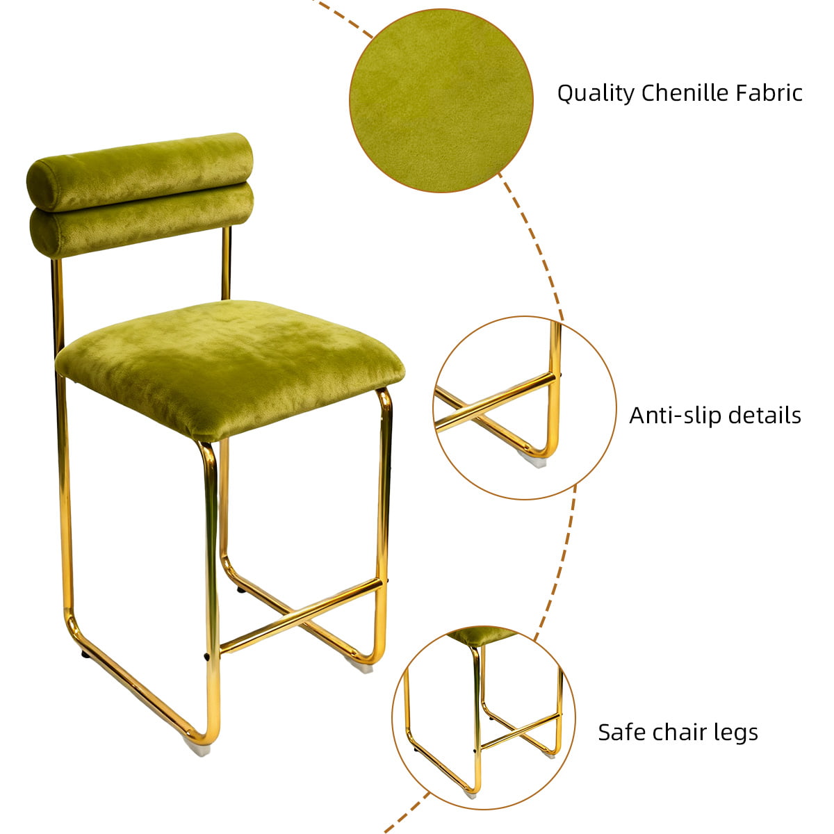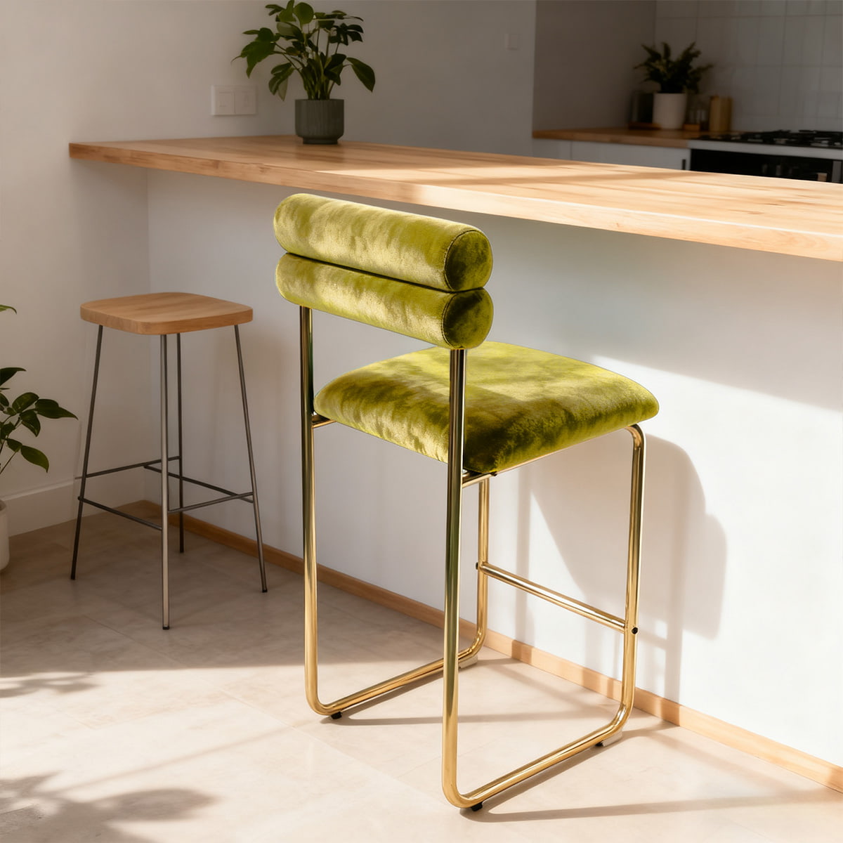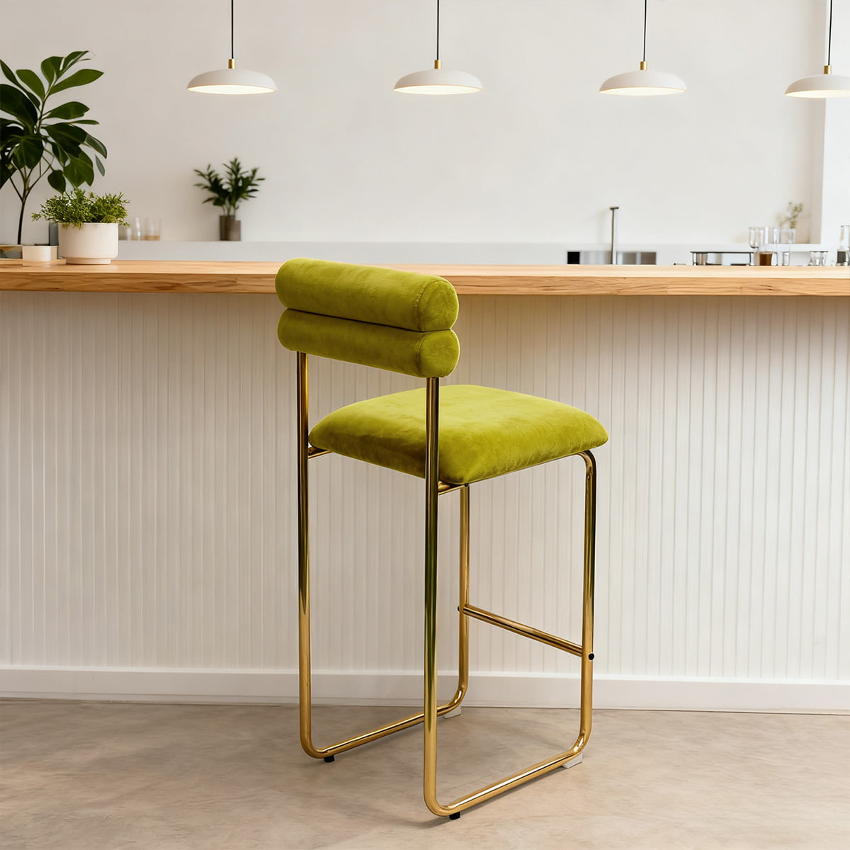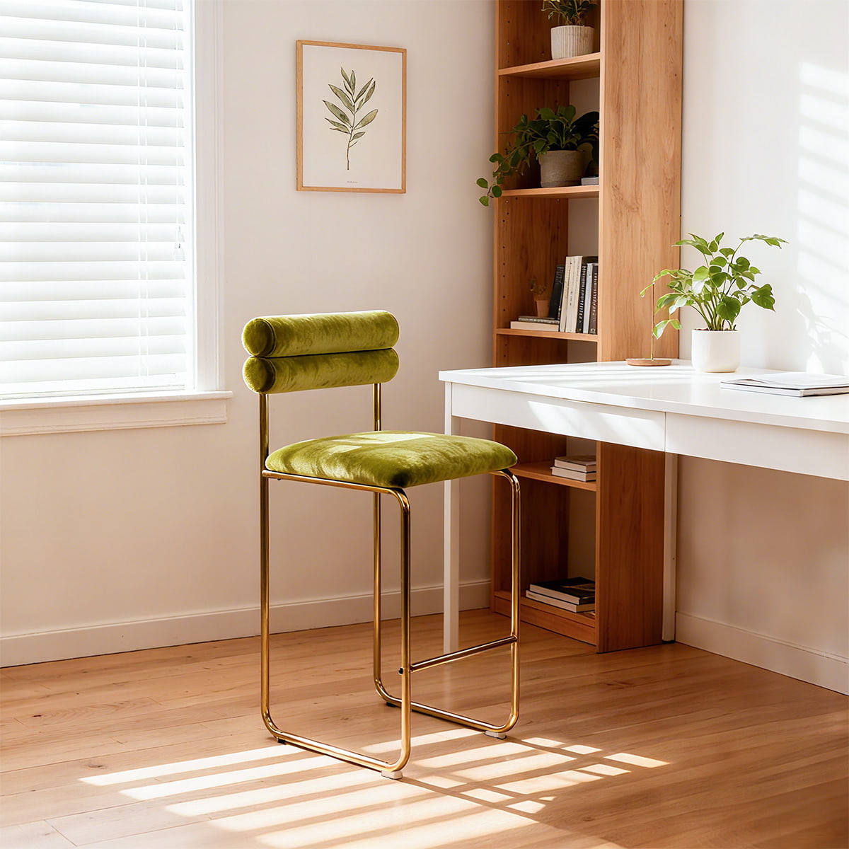 READ MOREBring contemporary elegance and comfort into your space with the DUOMEI Green Velvet Counter Height Bar Stool. This statement piece features a plush velvet seat and cylindrical double-layer backrest supported by a golden steel frame, blending modern aesthetics with ergonomic functionality.