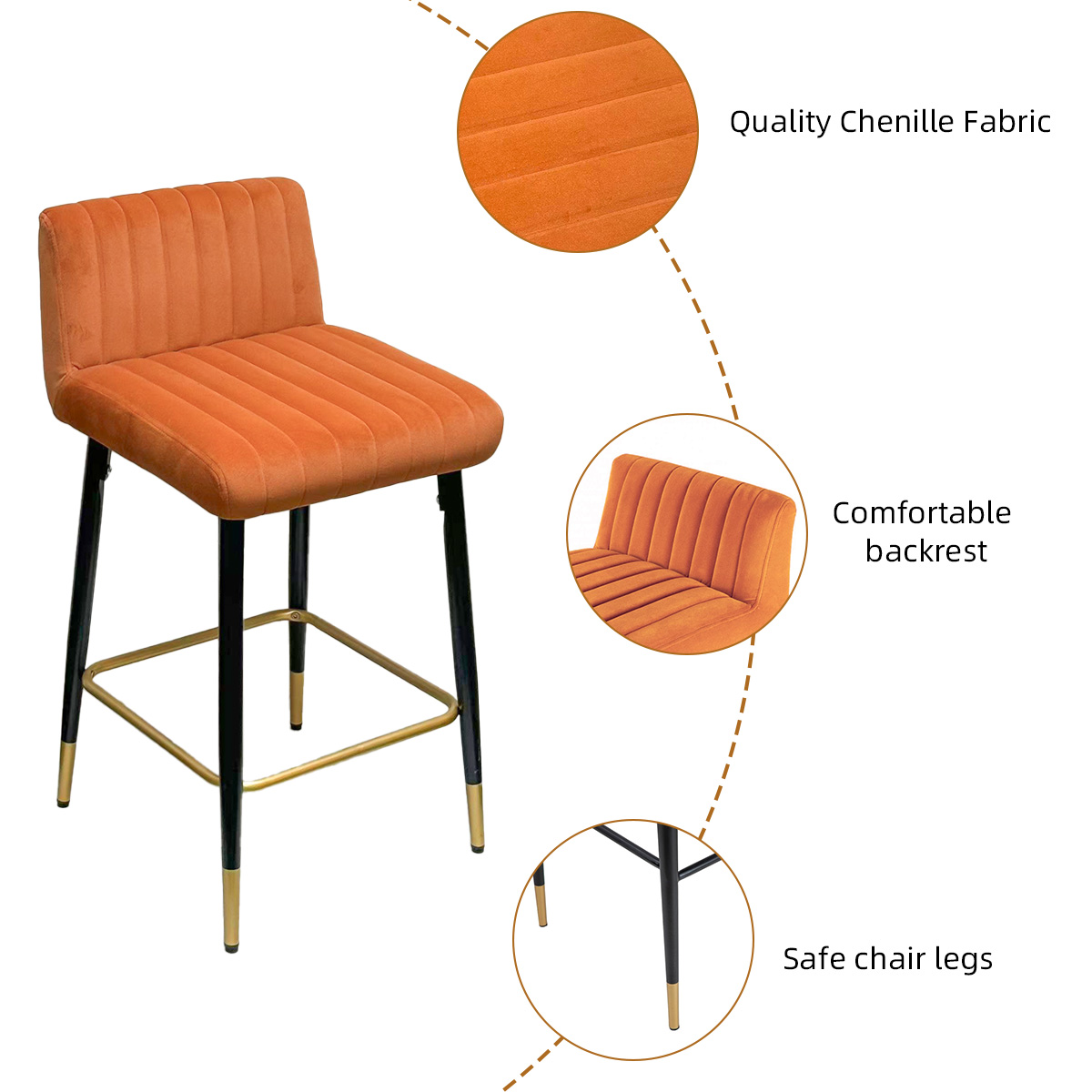 Perfectly sized for kitchen islands, bars, cafés, and dining counters, the stool combines ergonomic comfort with timeless modern aesthetics. Its thick cushioned seat and soft backrest provide superior support, while the built-in footrest enhances posture and relaxation. Whether you’re hosting guests or enjoying a quiet morning coffee, this stool elevates every moment with elegance and comfort.
