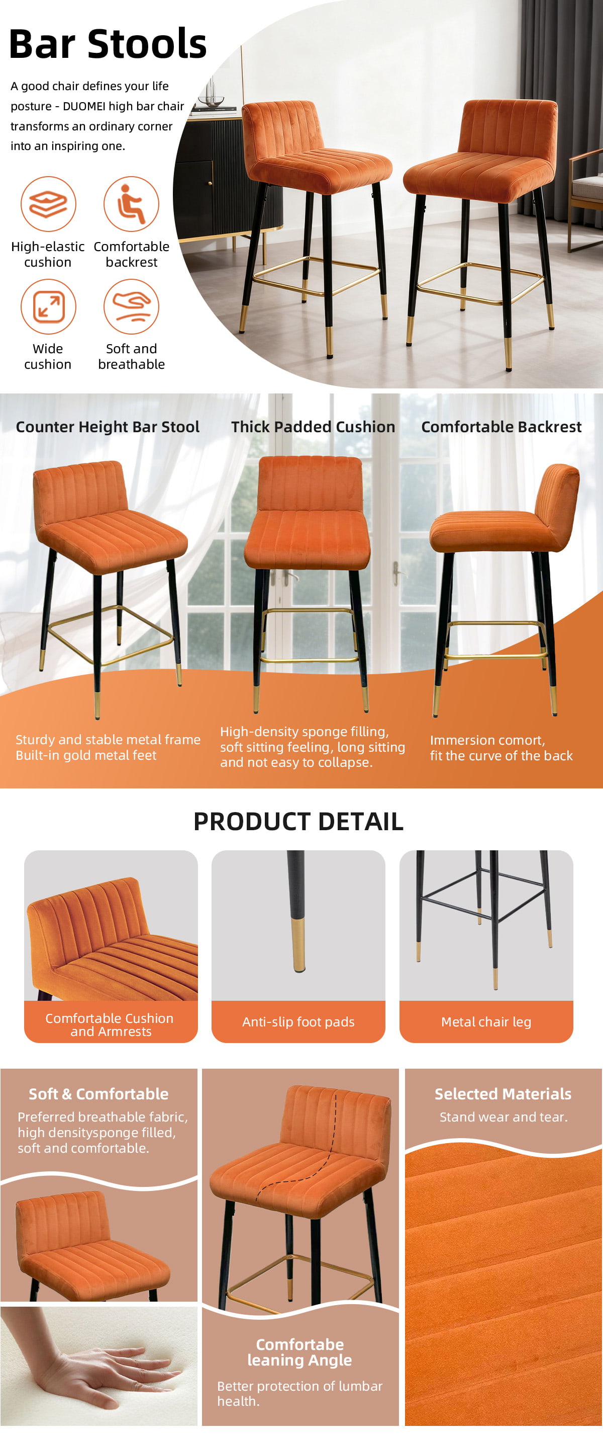 Anji Duomei Intelligence Furniture Technology Co., Ltd. is a professional B2B furniture manufacturer and exporter specializing in modern bar stools, swivel counter chairs, and velvet upholstered dining furniture. With years of OEM/ODM experience, we provide customized manufacturing solutions for wholesalers, hotel projects, interior designers, and e-commerce brands in the USA, UK, Canada, Germany, and Australia.